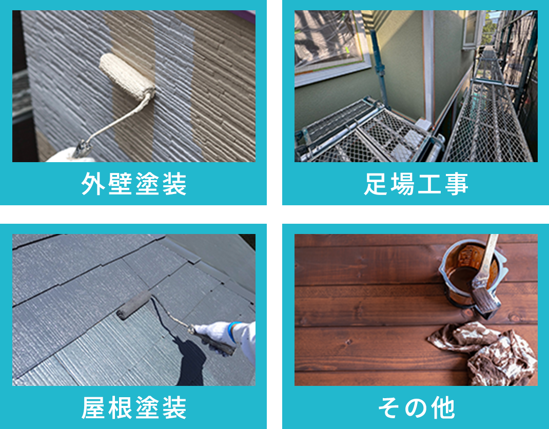 足場工事から住宅塗装・防水工事まで、すべての工程を自社で一貫対応しています。